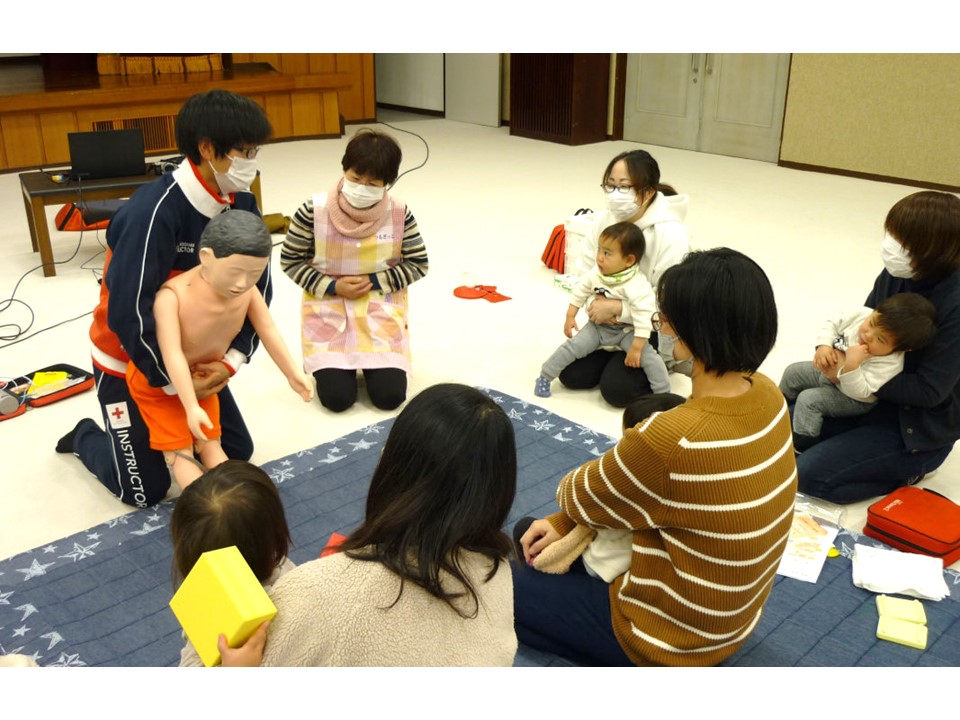 日赤徳島県支部は、乳児・幼児が突然心肺停止状態になった時の対処方法を、県内の各地域で講習しています。