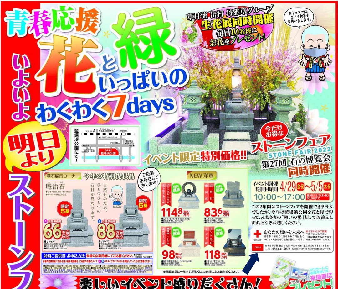 4月28日、株式会社ぶつだんのもり(代表取締役社長 岸本耕三)様が掲出された徳島新聞朝刊の紙面広告に、日本赤十字社活動支援費を呼びかける記事を掲載いただきました。