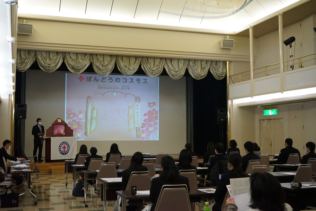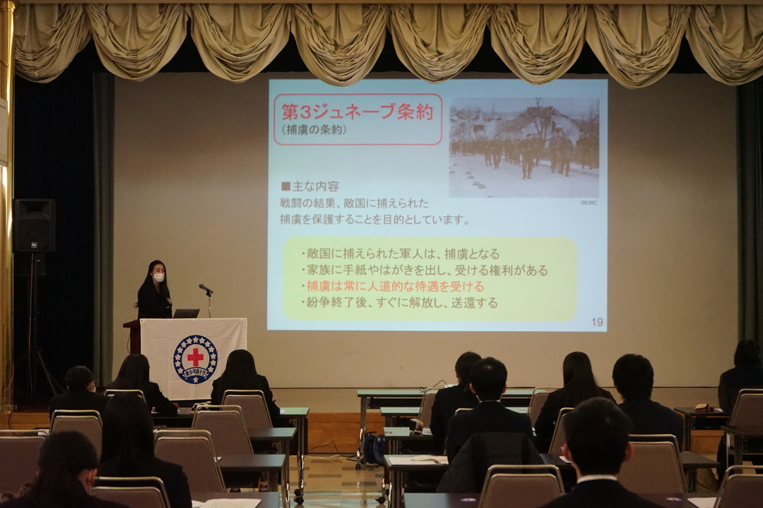捕虜を人道的に待遇し、奇跡の収容所と賞賛されている板東俘虜収容所での人道的な史実を通して、「人道」について学ぶ学習会を1月21日、鳴門市ドイツ館で開催し、JRC高校生メンバーなど33名が参加しました。