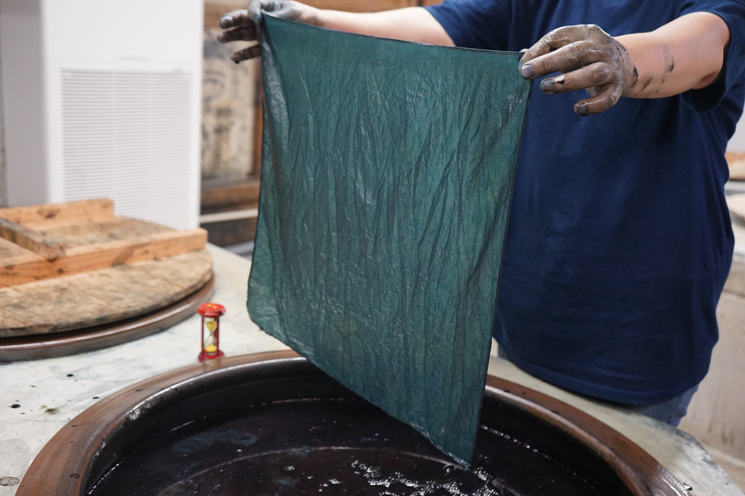 30分程度の藍染め体験は、国内外の観光客に人気の観光スポットです。
