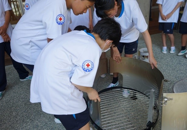 6月20日(火)、佐那河内中学校の1年生を対象に赤十字防災セミナーを開催しました。地元の赤十字奉仕団の皆さんも応援に駆けつけ、災害用移動炊飯器とハイゼックス(災害用炊飯袋)を活用した「炊き出し」と防災学習「非常持ち出し品を考えよう」を実施。
