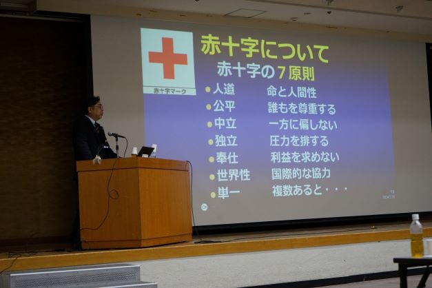 続いて、赤十字奉仕団支部指導講師 上田 託也 氏による「赤十字奉仕団とボランティア」と題した講演を行いました。