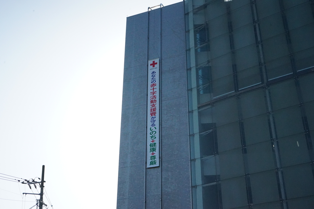 地域ではためく赤十字懸垂幕! ~藍住町役場への懸垂幕設置は、県内市町村初~