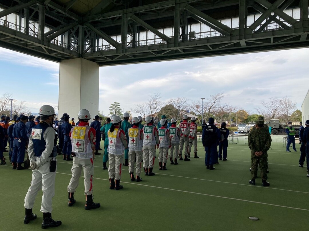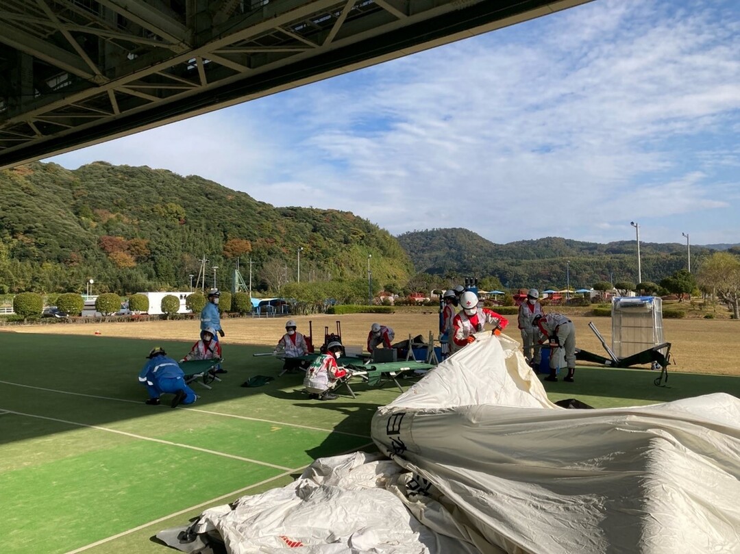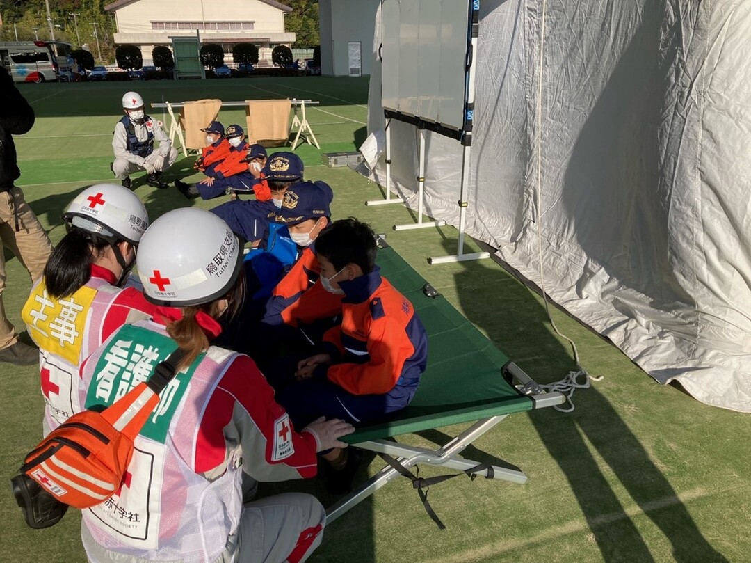 令和4年11月19日(土)に鳥取県中部の東郷湖羽合臨海公園で開催された「とっとり防災フェスタ2022」合同防災訓練に救護班が参加しました。