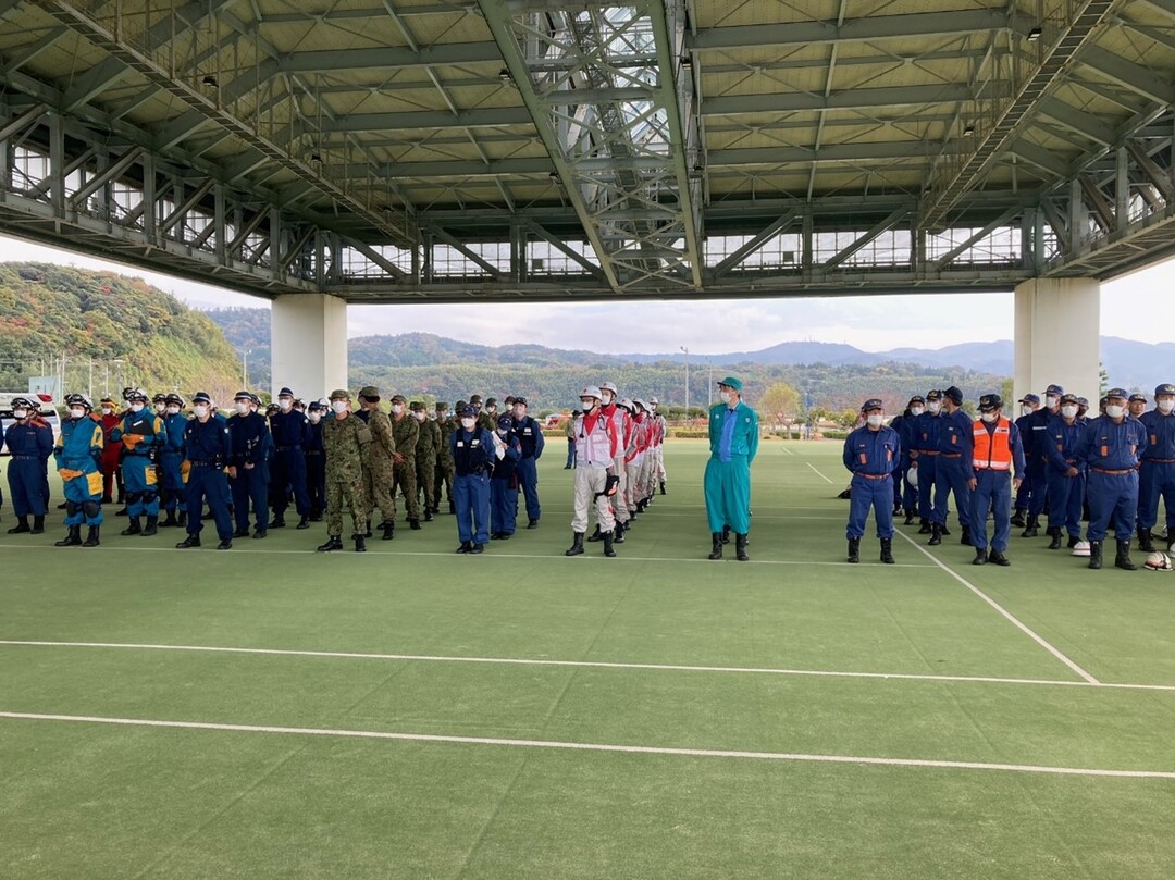 また、消防局や県警、自衛隊、海上保安庁、地元の消防団等、多くの関係機関が参加しており、災害発生時に求められる関係機関同士の連携を確認することができ、有意義な訓練となりました。