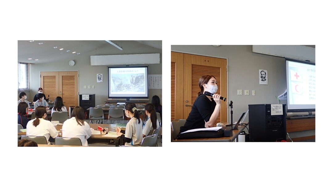 赤十字の国際要員として活動されている鳥取赤十字病院の看護係長を講師に招いて、赤十字の国際活動について学びました。