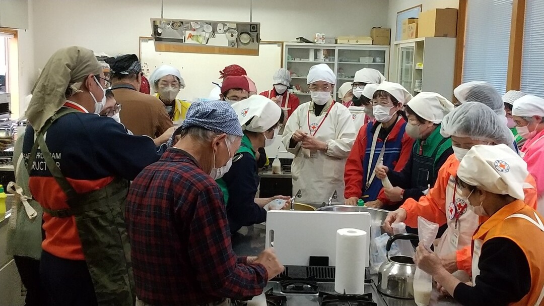この研修会は、災害時におけるボランティア活動の充実のため、地域防災計画等に盛り込まれる赤十字奉仕団の炊き出しについての知識と技術の向上を図るとともに、災害時における赤十字奉仕団の活動について考えることを目的として実施しました。
