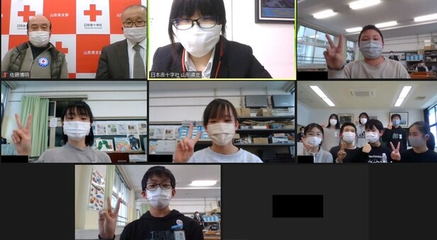 2月10日(木)、酒田市立若浜小学校と白鷹町立荒砥小学校の青少年赤十字リーダー交流会がオンラインで行われ、2校の5学年児童 合計8名が参加しました。