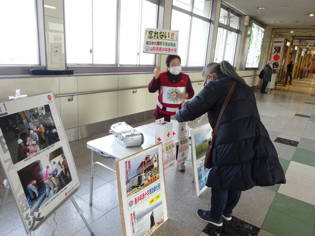 3月11日(金)、JR山形駅東西自由通路で山形県青少年赤十字賛助奉仕団による東日本大震災募金活動が行われました。
