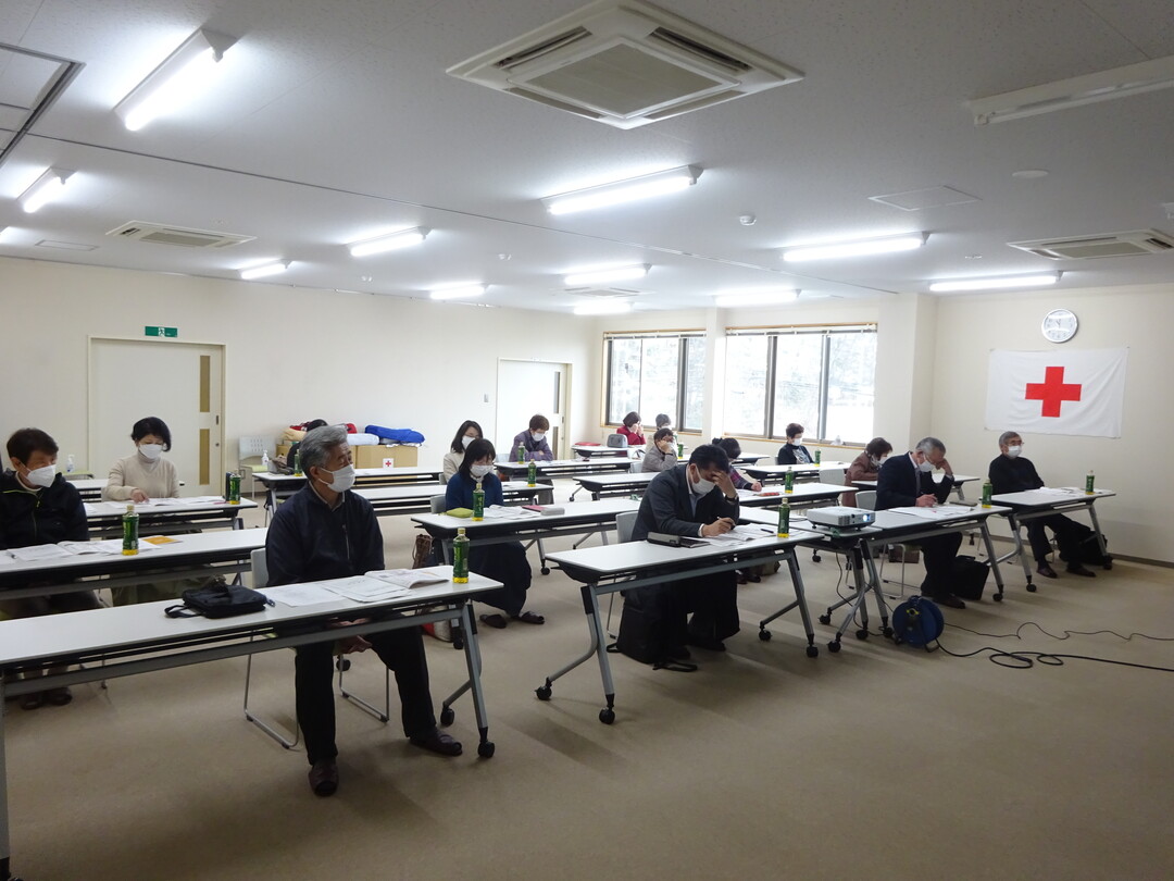 新型コロナウイルス感染症の影響により2年ぶりの研修開催となりましたが、当日は17名の方にご参加いただき、赤十字の基本的な情報やボランティア活動におけるリーダーとしての役割などの学習に加え、災害に備えての防災・減災に係るセミナーの受講や、災害救護用器材の設置訓練等を行いました。