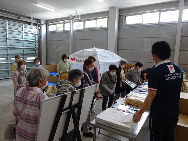 三川町赤十字奉仕団・酒田市本楯赤十字奉仕団が災害救援物資の展示見学等を行いました