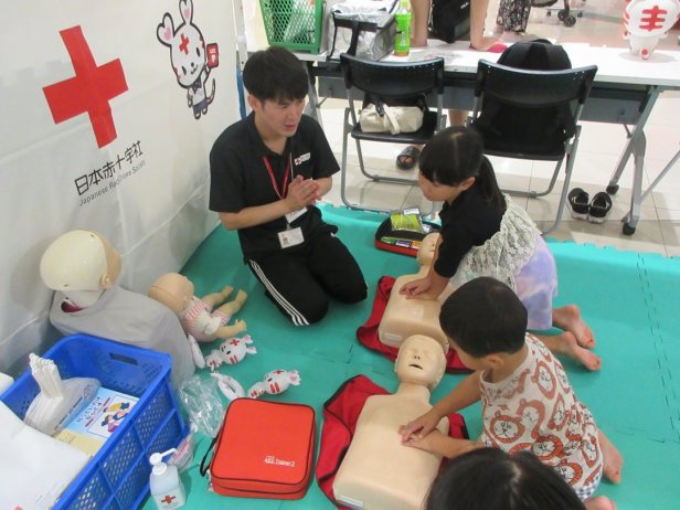 日本赤十字社は、「苦しんでいる人を救いたいという思いを結集し、いかなる状況下でも、人間のいのちと健康、尊厳を守る」という使命に基づき、各種講習を行っています。