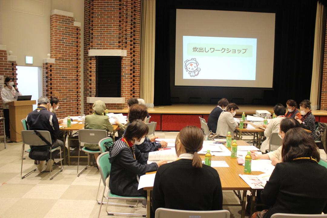 地域での赤十字活動の発展と災害時の被災者支援に対する意識の向上を目的に、「赤十字」や「ボランティアリーダー」などについて学ぶ講義と「アレルギーに配慮した災害時の炊き出し」について考えるワークショップを行いました。