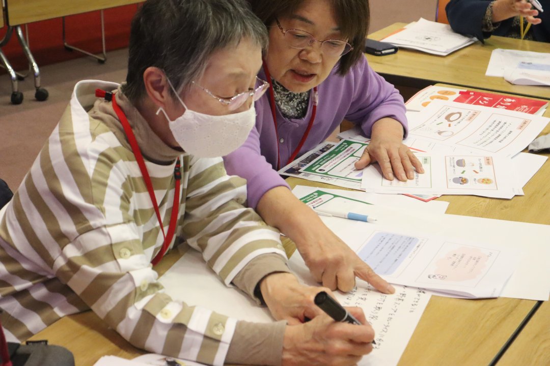 災害時の食支援では、“全国災害ボランティア支援団体ネットワーク”のJVOADから講師をお招きし、災害時の食と栄養の問題や炊き出し支援で気を付けるポイントなどについて、グループワークを交えながら、参加者同士で意見交換しました。