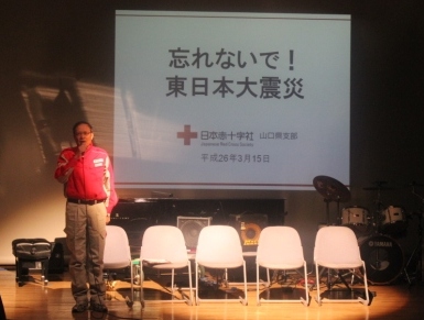 協賛の当支部は、発災後の救護活動や義援金募集・配分の状況、海外100カ国からの救援金をもとにした復興支援事業について感謝を込めて報告しました。