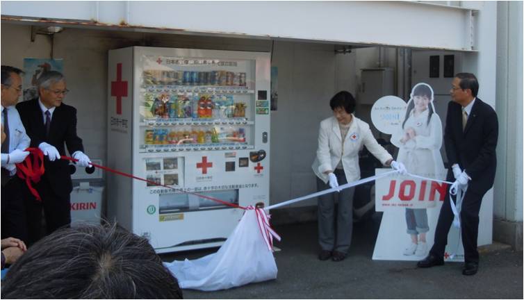山口県内で初の赤十字寄付金付自動販売機の設置・除幕式を行いました。