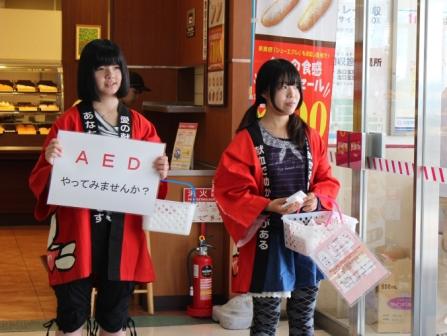山口県青年(学生)赤十字奉仕団もトラさんもアピール!「いのちを救うためのAED!体験してみませんかー」