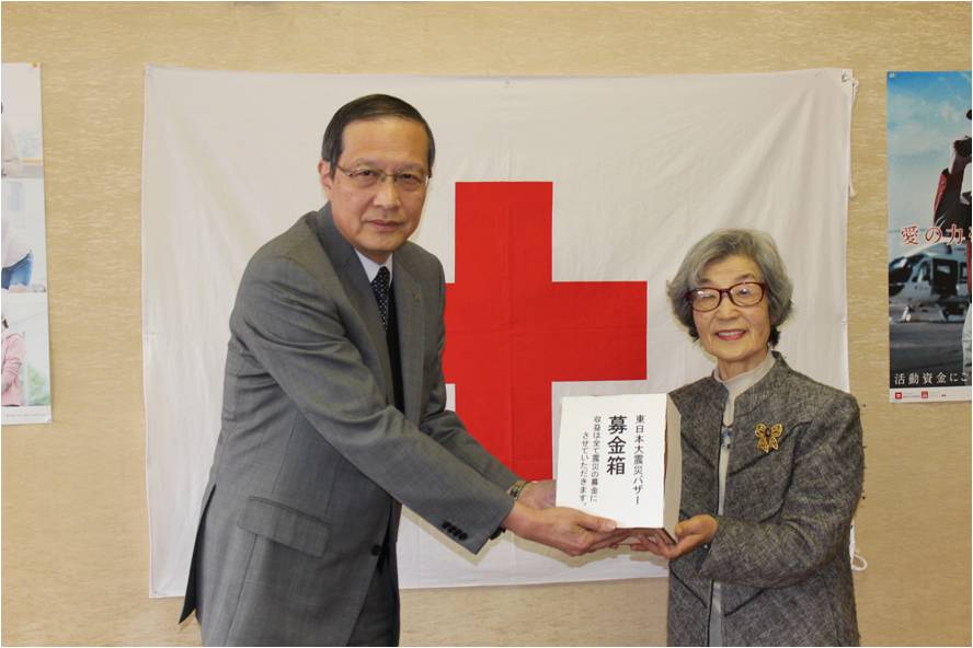バザーの収益金は全額日本赤十字社山口県支部を通して被災者の皆様へ届けられています。
