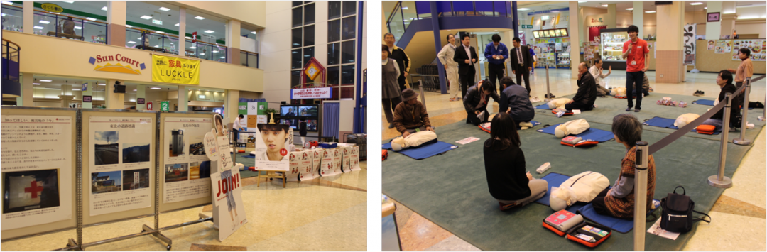 赤十字救急法体験コーナーと、『知ってほしい被災地の「今」』パネル展を開催しました。