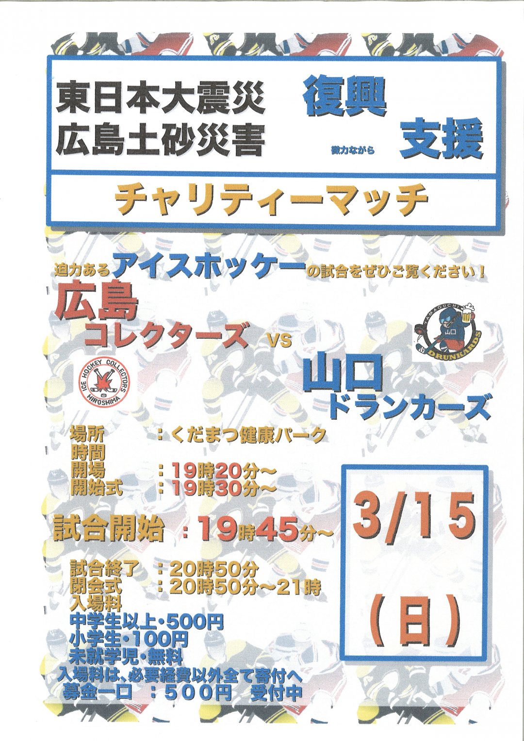平成27年3月19日(水)、アイスホッケーチーム 山口ドランカーズ様より