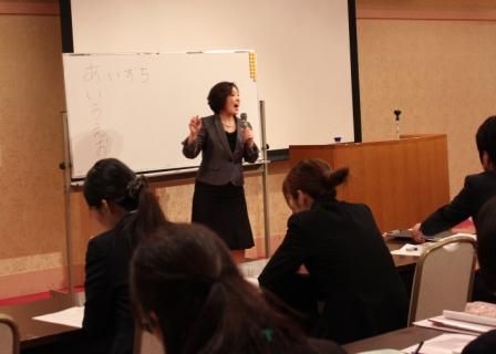 続いて、有限会社ケイ・アンド・ワイの温品富美子講師による「社会人としての基本マナー」を行いました。