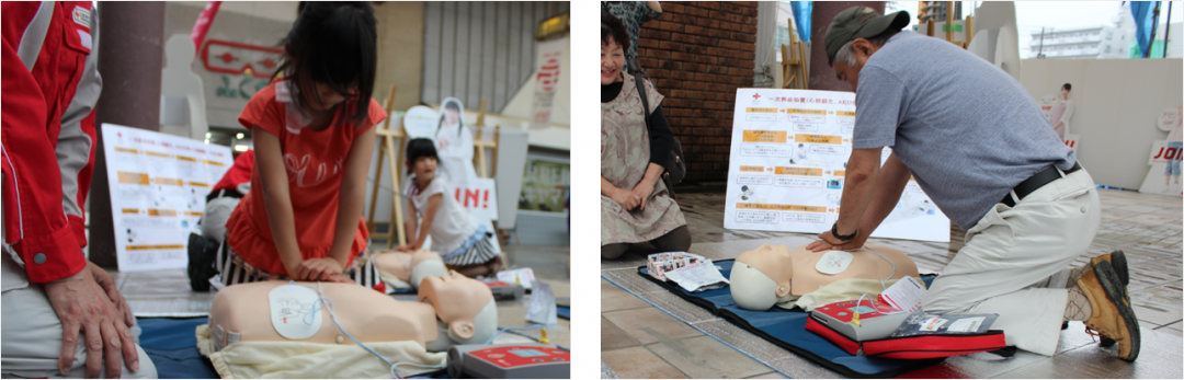 復興の進まない東北の被災地に思いをはせたり赤十字救急法を体験していただきました。