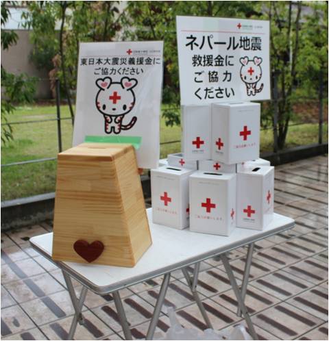 東日本大震災義援金1,983円、ネパール地震救援金11,485円のご協力をいただきました。