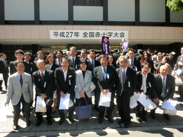 本日、東京都の明治神宮会館において、日赤名誉総裁皇后陛下・各名誉副総裁ご臨場のもと、平成27年全国赤十字大会が開催されました。山口県からは、赤十字奉仕団・青少年赤十字関係者や地区・分区関係者等19人が出席。名誉総裁皇后陛下から、高額寄付者に対する金色有功章のご授与や日本赤十字社社長による表彰が行われた後、赤十字活動に関する実践報告などが行われました。