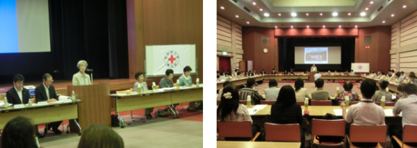県内各地の地域奉仕団の委員長、各市町村担当者が一堂に会し、昨年度の研修会や協議会の報告、今年の活動計画について話し合いました。また、赤十字運動月間における県下一斉ボランタリーサービスの様子が地元新聞に取り上げられ、地域での事例発表も行われました。地域奉仕団以外の特殊奉仕団委員長も出席し、それぞれの奉仕団の活動を紹介し、同じ赤十字奉仕団としての交流を行いました。