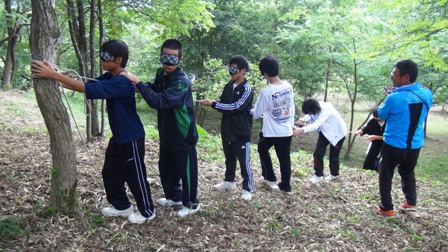 暗闇体験の様子 (フィールドワークの一コマ) |