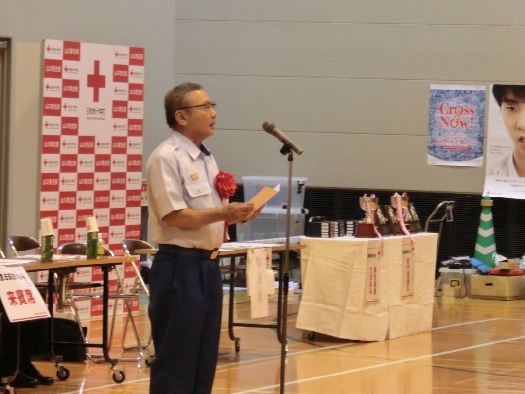 山口県消防長会副会長 周南市消防本部消防長 河本晃 様を来賓に迎え、選手への激励の言葉をいただきました。