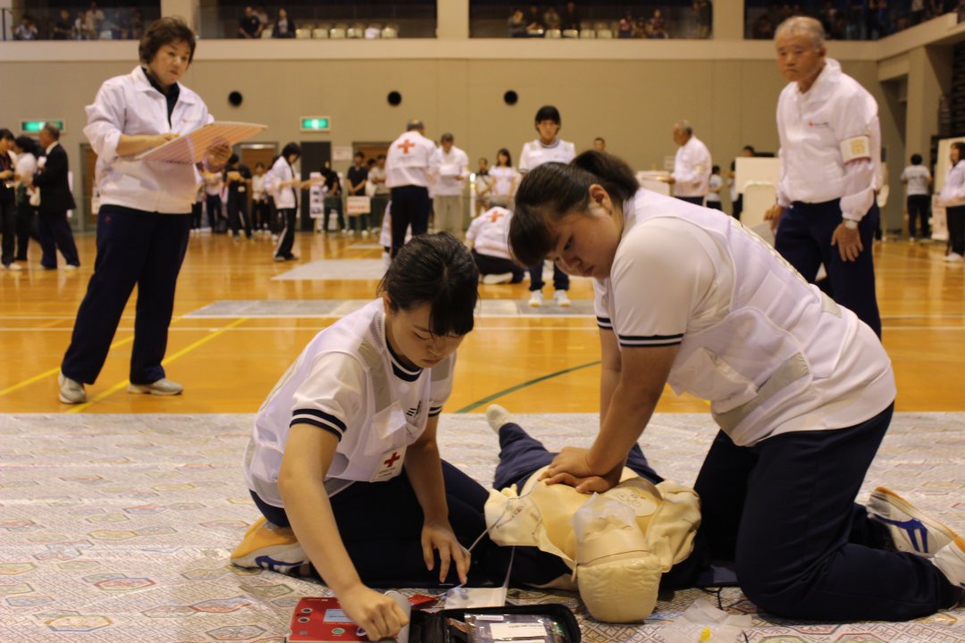 日本赤十字社では、人間のいのちと健康を守るための救急法講習会を実施し、その知識と技術を広く県民の皆さまに知っていただく活動をしています。
