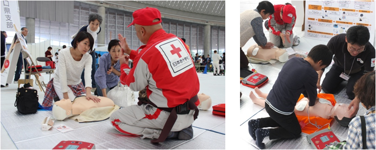 また、救急法体験コーナーでは、幅広い年齢層の皆様が興味を持って、