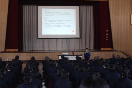 10月21日、青少年赤十字加盟校の山口県立宇部商業高等学校にて1年生(156名)を対象に、高齢者について理解するための講習を実施しました。
