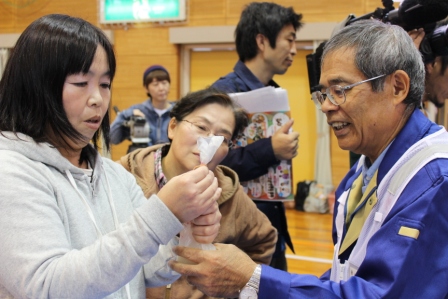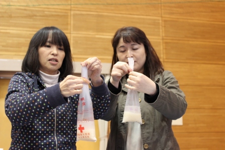 当支部からは、ボランティアを含む5名の指導員を派遣し、熱に強い袋(ハイゼックス)を使ったご飯の炊き方や、けがの手当の仕方等を指導をしました。