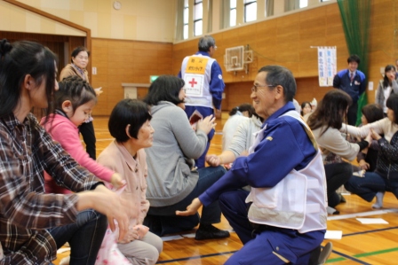↑けがの手当の仕方や、日赤の救援物資の紹介もしました。