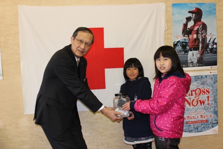 平成28 年3月1日(火)、山口市立大殿小学校のJRC委員会のメンバーが中心になって3学期に校内で実施した募金活動分を「1円玉募金」として、日赤山口県支部へ届けてくださいました。