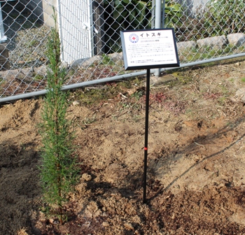 山口市立湯田小学校に(JRC加盟校)赤十字シンボルツリー「イトスギ」の植樹を行いました。