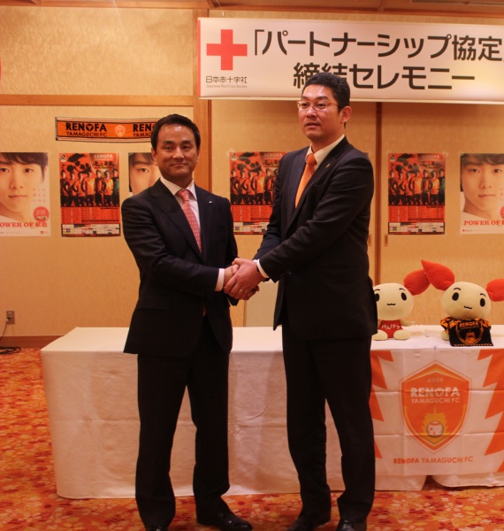 3月25日(金)、株式会社レノファ山口と日本赤十字社山口県支部でパートナーシップ協定の締結を行いました。