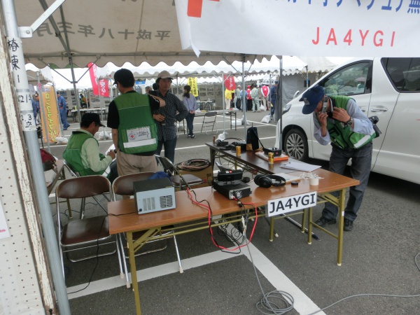 アマチュア無線奉仕団は、展示・体験コーナーで資機材の展示を行うと共に、非常無線通信訓練により、訓練会場から他県の無線奉仕団や中継地点を介た他の訓練会場との通信状況を確認しました。