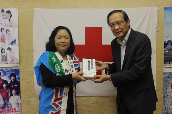 持参された協会の石光教子副会長(維新塾21代表)は、「観光県熊本の惨状は、観光に携わるものとして大変な衝撃でした。一日も早く元の生活を取り戻され、熊本観光が回復することを願っています。」と話しておられました。