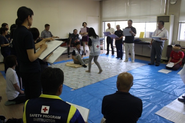 8月27日、この大会の審判やタイムキーパー、記録などを担当する山口県赤十字安全奉仕団員(ボランティア)約40名が集結。厳正な審査や円滑な大会運営のためのスタッフミーティングを行いました。