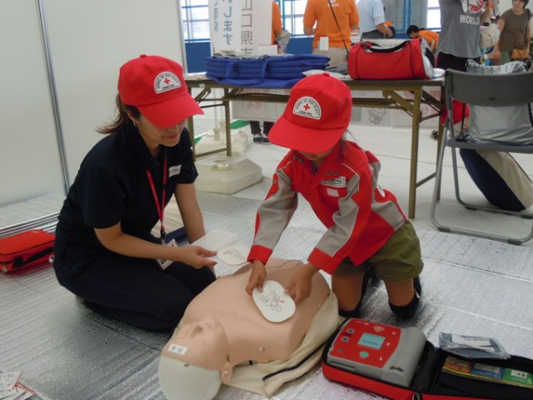「AEDがどのような物か一度触ってみたかった」、とブースに来られた主婦やご家族連れ、また「会社で研修を受けたけど何年も前なので、もう一度教えて欲しい」と言われた男性などがおられ、AEDや救急法への関心が高いことを感じました。
