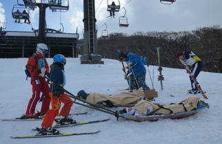 日本赤十字社では、スキー場などで安全にウィンタースポーツを楽しむために役に立つ、事故防止の知識やけがをした人を救助するための方法(応急手当や搬送の仕方など)を学んでいただくことができる「雪上安全法」という講習を実施しています。