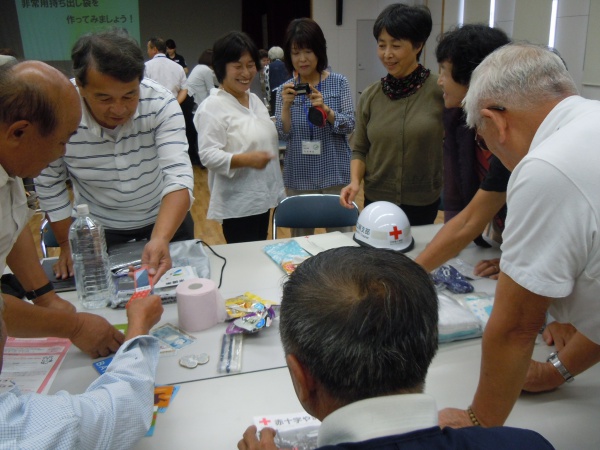 内容:防災・減災講話、非常用持ち出しリュックの作成、避難所で役立つ技術(毛布ガウン等)