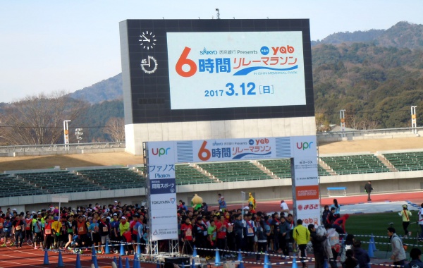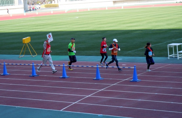 3月12日、山口市の維新百年記念公園陸上競技場で開催されたリレーマラソン大会に、日赤からも病院・支部職員10名でチームを作り、参加しました。