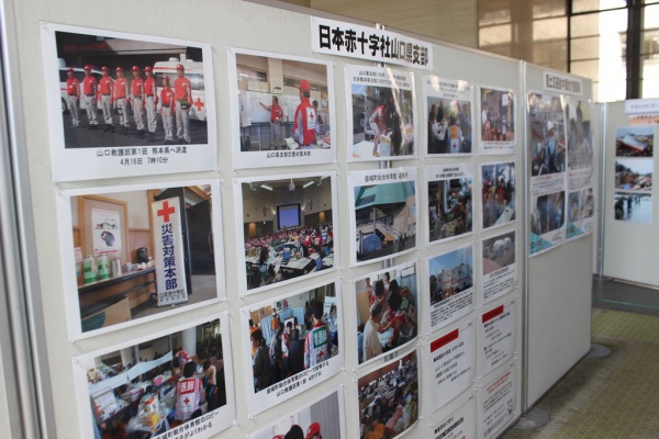 熊本地震や東日本大震災等で活動した日赤山口県支部、自衛隊や県警、山口市消防本部などの活動写真展が4月18日(火)まで、県庁1階エントランスホールにて開催されています。