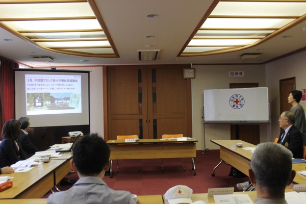 午前中の赤十字奉仕団山口県支部委員会では、県内の赤十字ボランティアグループ(赤十字ボランティアの詳細はこちらへ)の代表7名が、昨年度の活動状況等を報告し、互いに情報交換をしながら、「県下へ広く赤十字を浸透させるためには」をテーマに今後の方策を協議しました。