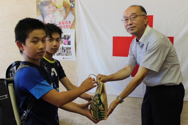 7月13日、山口市立大殿小学校6年生の、JRC(青少年赤十字)部委員長と副委員長が、校内で集められた1円玉募金を、熊本地震災害の被災者のために役立てて欲しいと、お持ちくださいました。