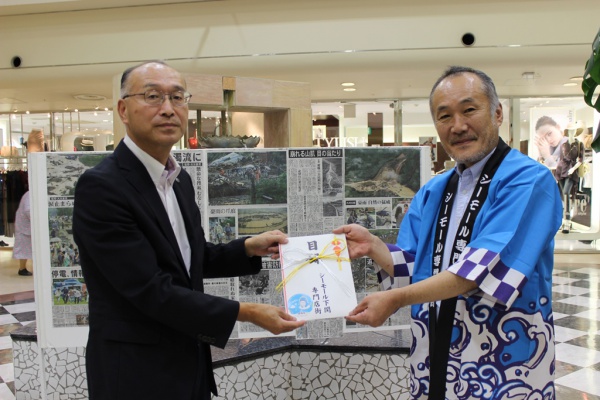 これは、ショッピングセンター内の専門店街1Fコンコースに募金箱を設置し集められたものと、同社からの義援金を併せたものです。